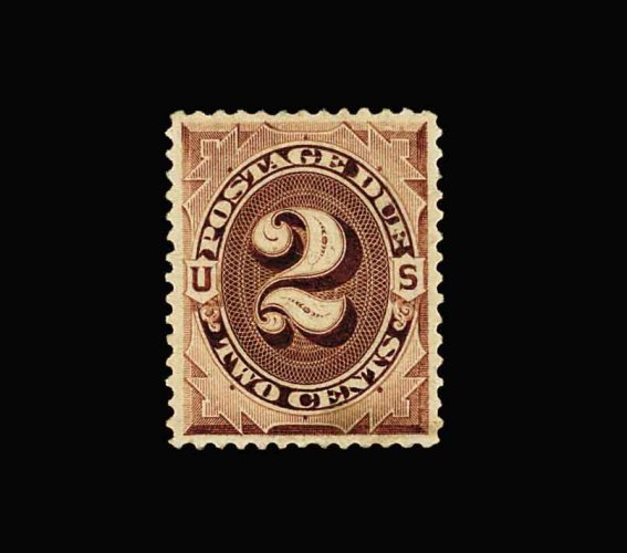 1068 og J9 image#J9, 2c Deep brown special printing, a magnificent quality example of this immensely rare stamp, featuring near perfect centering within unusually large margins, intense color and a prooflike impression on bright paper, full clean o.g. that has been lightly hinged, extremely fine; any example of the Two Cent Postage Due Special Printing is a most elusive stamp, but to find one with full original gum and in gem quality is an almost impossible task; Scott lists the quantity issued at 1,361, but it is widely accepted that only a tiny fraction of this number were actually sold as Special Printings; 1960 and 1999 PF certificates; ex-Engel. (Image) 7,500.00