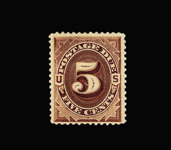 1069 og J11 image#J11, 5c Deep brown special printing, an incredibly elusive sound mint example of this important rarity, wonderfully fresh and bright, prooflike color and impression, particularly well centered within large margins, full o.g., extremely fine for this; one of the finest original gum Five Cent Postage Due Special Printings in existence; it has been estimated that only approximately 250 of this value ever reached the public; 1958 and 1999 PF certificates; ex-Engel. (Image) 7,500.00