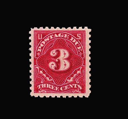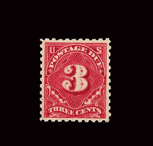 1126 og J54 image#J54, 3c Carmine lake, a premium quality mint example of this very scarce stamp, possessing exceptional centering and large margins unlike the vast majority, strikingly intense color and impression, full clean o.g. with just the barest suggestion of a hinge mark, extremely fine; 1988 PF certificate for a block of four, this being the top right stamp. (Image) 875.00
