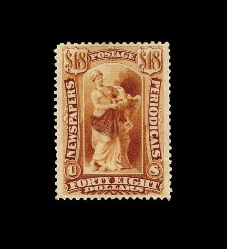 1210 og PR77 image#PR77, $36.00 Indian red, extraordinarily well centered and margined for this difficult stamp, fresh color and impression, o.g., extremely fine; 1989 PF certificate; ex-Weisman. (Image) 725.00
