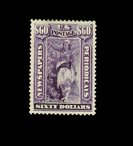 1212 og PR79 image#PR79, $60.00 Purple, an eye-arresting mint example of this high value, possessing mathematically precise centering amid extravagantly large margins all around, brilliantly fresh color and a crisp impression, full o.g., extremely fine; a gem for the collector who appreciates the true rarity of this stamp with such superb centering; 1990 PSE certificate; ex-Weisman. (Image) 750.00