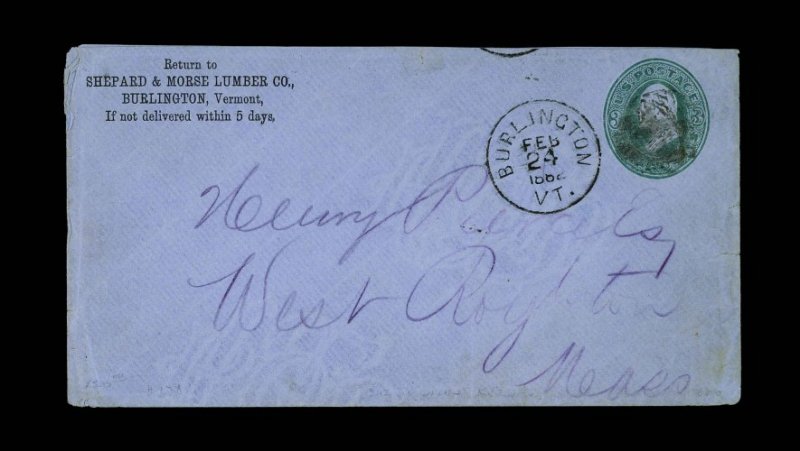 Lumber Co." return corner card at top left, neat "Burlington, Vt./Feb 24,