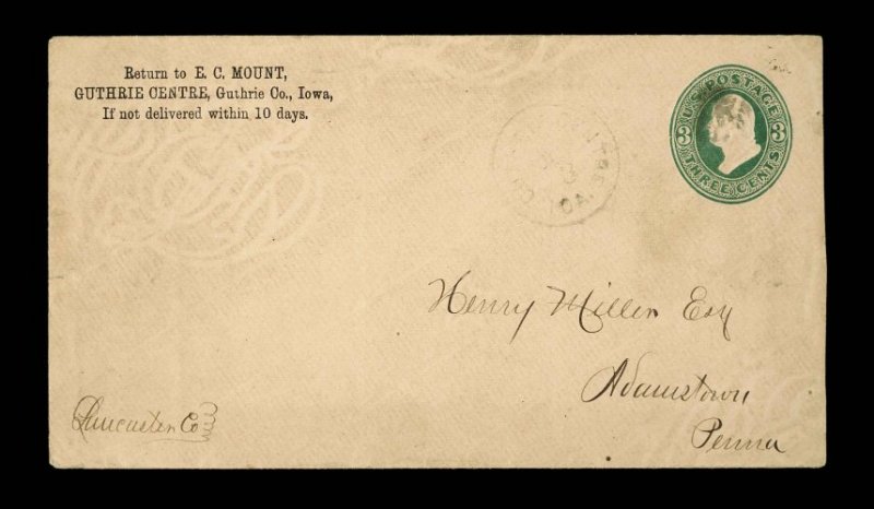 54, wmk. 5, used entire, addressed to Adamstown, Pa., with printed "E.C.