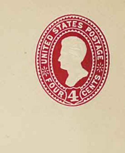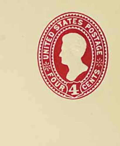 1407 ogc U325 var. image#U325 var., 4c Carmine on pale amber, die 91, size 8, knife 38, wmk. 7, pristine mint entire, unlisted in Scott, the very rare "pale amber" paper type that can be specifically distinguished by its size, knife and watermark, carries a 42 times premium with UPSS, "post office" fresh with highly detailed embossing, an extremely fine and seldom seen variety (UPSS #1072). (Image) Est. 200-300