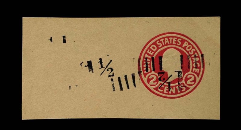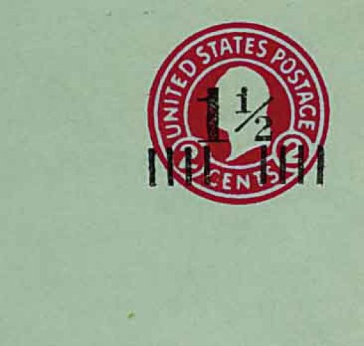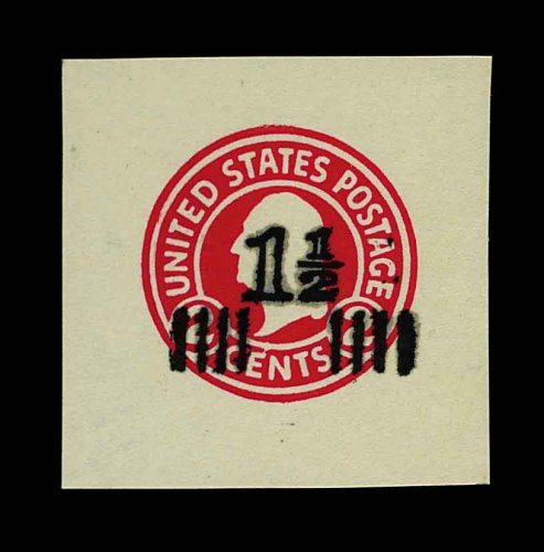1490 ogc U520 image#U520, 1 1/2c on 2c Carmine on white, die 1, UPSS die 134(A), size 13, knife 80, wmk. 25, mint entire, clean and fresh, very fine; ex-Barkhausen (UPSS #3248). (Image) 500.00