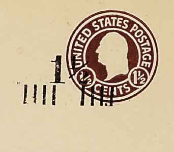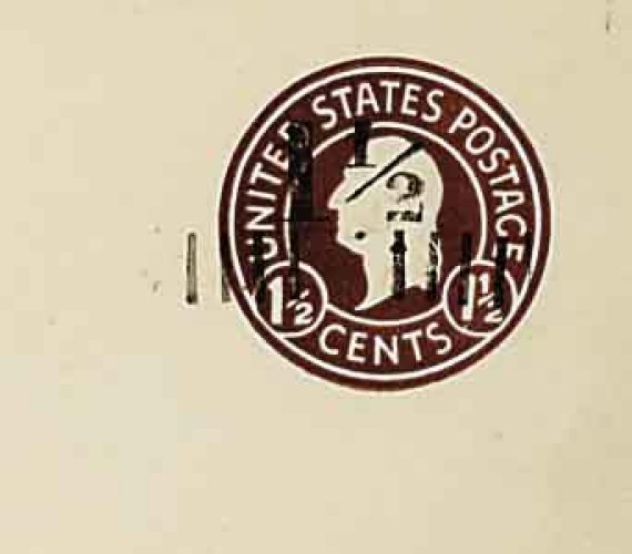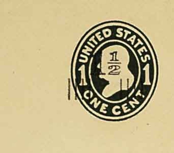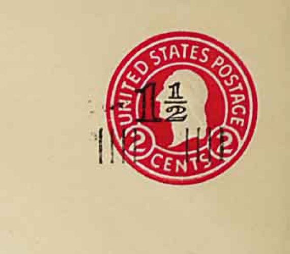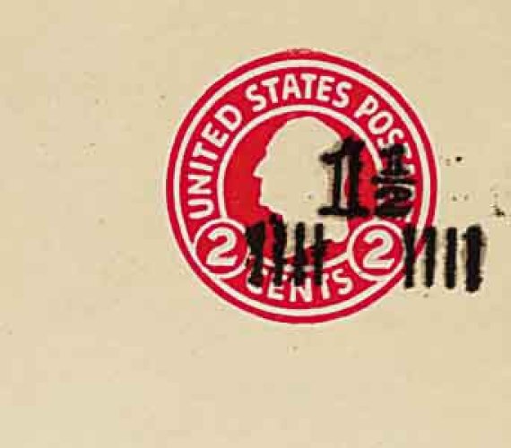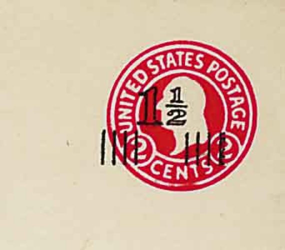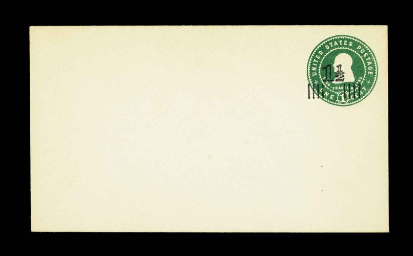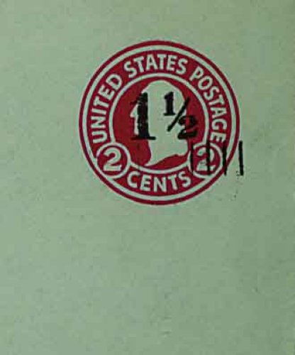 1492 ogc U520b image#U520b, 1 1/2c on 2c Carmine on white, die 6, UPSS die 139(F), size 13, knife 79, wmk. 22, a "post office" fresh mint entire, extremely fine and scarce (UPSS #3251). (Image) 500.00