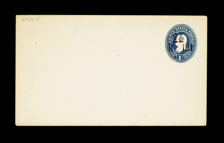 1483 ogc U504 var. image#U504 var., 1 1/2c on 2c Carmine on blue, die 6, UPSS die 139(F), size 13, knife 78, wmk. 27, mint entire in an unlisted Scott die type, clean and bright, very fine and choice; 1981 PF certificate (UPSS #3180). (Image) Est. 400-500