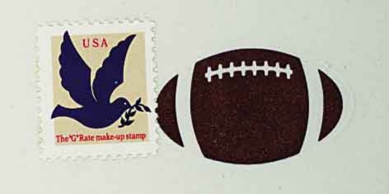 1510 ogc U631a image#U631a, 29c Football, black color omitted, larger sized mint entire, with adhesive "G" rate stamp affixed next to "football", pristine, extremely fine; very rare as only six such errors are reported according to the Datz catalog; listed but unpriced in both Scott and Datz. (Image) Est. 300-400