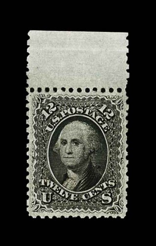 148 og 69 image#69, 12c Black, a magnificent quality top sheet-margin mint example, possessing not only a marvelous overall freshness, but it is incredibly well centered as well, with large well balanced margins all around, deep rich color and a clean detailed impression on crisp paper, full o.g., lightly hinged, extremely fine; one of the finest original gum Twelve Cent 1861 Issues to come on the market in years; choice mint original gum examples of this value, as well as others from the 1861-66 series, are among the most elusive of all 19th century stamps to find, and when they make an appearance at auction today they invariably realize many multiples of their inexplicably low catalog values in Scott; 1991 PF certificate. (Image) 1,100.00