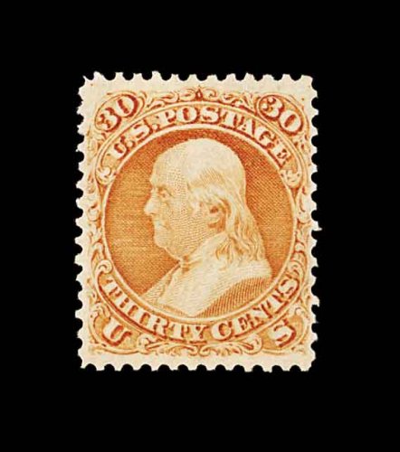 154 og 71 image#71, 30c Orange, a fabulously fresh and choice mint example of one of the 19th century's most difficult stamps, possessing an overall freshness and brilliance unlike any other we have seen, with spectacularly rich and radiant color, and an impression that would rival any proof, extraordinarily well centered, especially when compared to most examples which typically have their perforations cutting the design on at least one side, this example's margins are unusually wide (even at sides), full clean o.g. that has been relatively lightly hinged, extremely fine; easily among the rarest stamps in the entire sale in terms of its condition; 1986 PF certificate; ex-Welling. (Image) 1,500.00