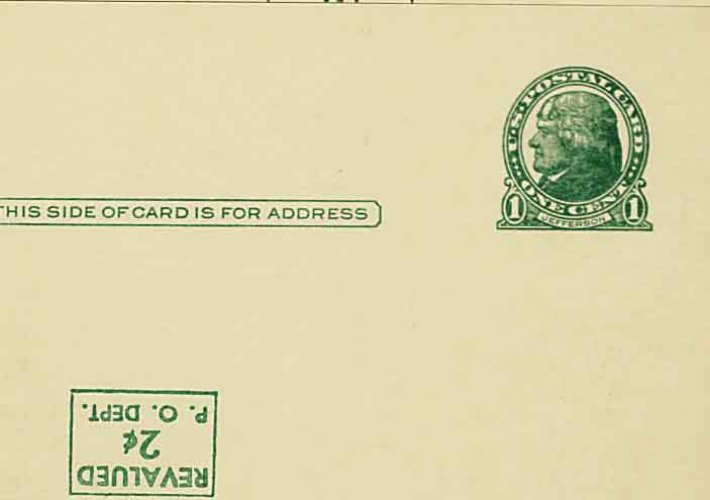 1592 ogc UX50a image#UX50a, 4c Customs, blue color omitted, fresh mint example of this striking error card, crisp stock, extremely fine (USPCC #S68a). (Image) 625.00