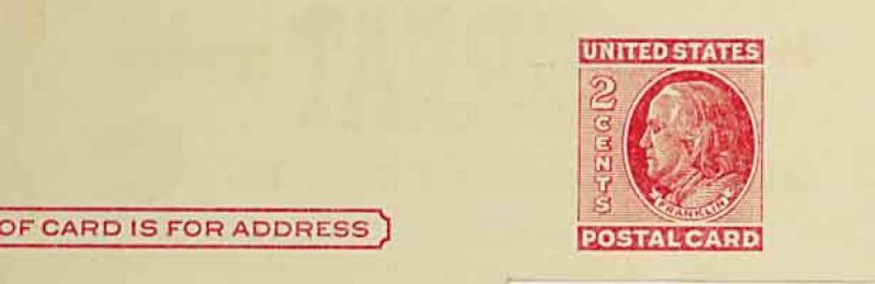 1595 ogc UX51 var. image#UX51 var., 4c Social Security, miscut by the G.P.O., crisp mint card, strongly miscut placing the indicia at center right, fresh and bright, extremely fine; a USPCC noted and discussed error; ex-Beachboard (USPCC #S69 var.). (Image) Est. 300-400