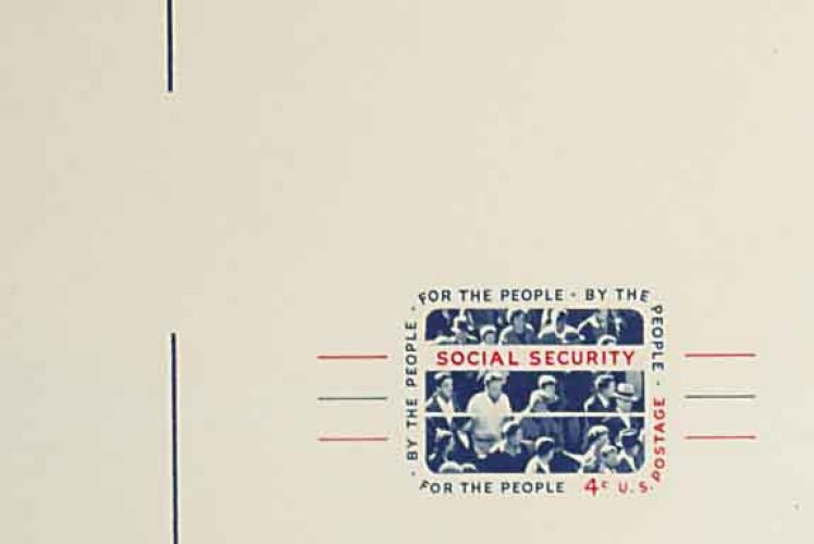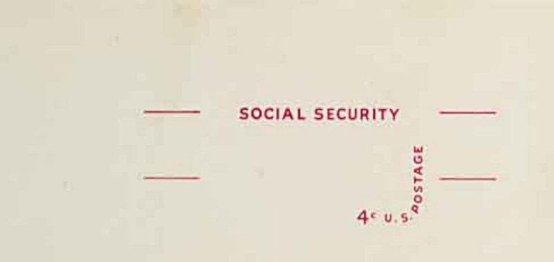 1594 ogc UX51b image#UX51b, 4c Social Security, blue color omitted, mint card, a few insignificant faint soil spots, still a very fine and rare error (USPCC #S69aa). (Image) 750.00