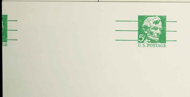 1596 ogc UX55a image#UX55a, 5c Lincoln, double impression, fresh mint card, displaying a normal and an additional partial horizontally shifted impression to extreme left, bright white paper, extremely fine and rare as only three such mint errors are known (USPCC #S73a). (Image) Est. 300-400
