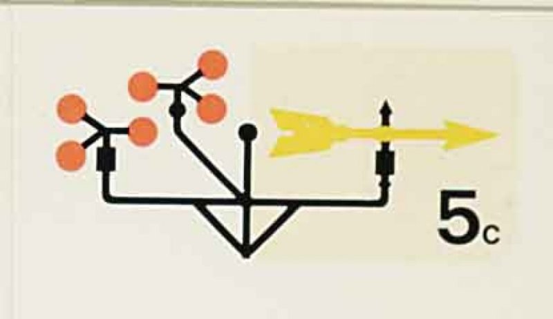 1597 ogc UX57a image#UX57a, 5c Weather Vane, yellow and black color omitted, fresh example of this mint card that is found with multiple color errors, bright and clean, extremely fine and rare; cataloging $900.00 with USPCC; 2000 PF certificate (USPCC #S76c). (Image) 700.00+