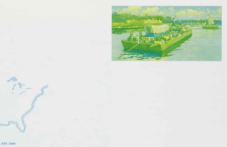1627 ogc UX124a image#UX124a, 15c Flatboat Ferry, black, blue, yellow and tagging omitted, gorgeous mint card, displaying multiple color omission errors, fresh and bright, extremely fine and rare as only one is known to exist; 2001 PF certificate (USPCC #S141a). (Image) Est. 1,000-1,500