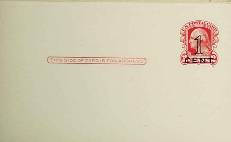 1637 ogc UY10a image#UY10a, "1 cent" Press printed surcharge on 2c + 2c Red on buff, paid reply postal card, message card with no surcharge, a very rare mint unfolded example, 2c Washington message card bears no surcharge, truly "post office" fresh and choice, extremely fine; unpriced in both Scott and USPCC, only three examples are known mint unfolded; ex-Beachboard (USPCC #MR17b). (Image) Est. 1,000-1,500