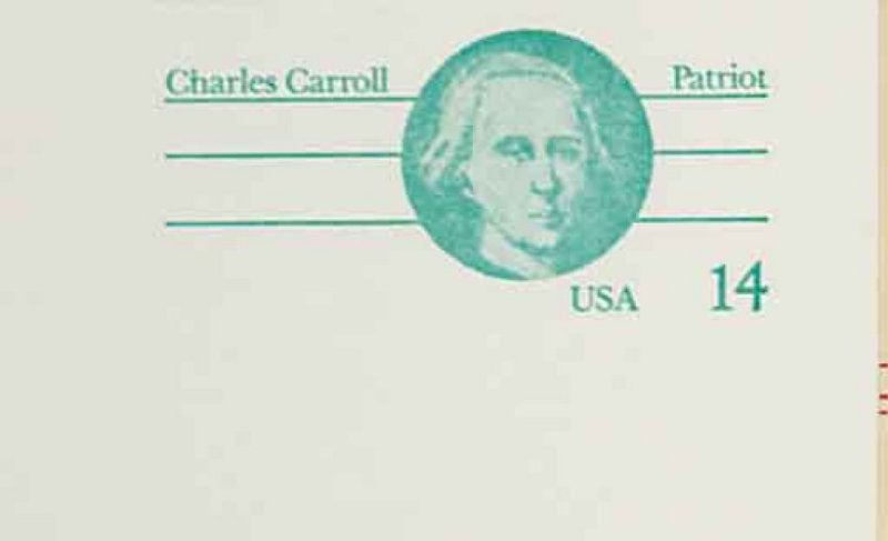 1648 ogc UY36a image#UY36a, 14c + 14c Carroll, paid reply postal card, printed on one card only, a very rare mint unfolded example, exceptionally fresh and choice, extremely fine; this is the only example reported (USPCC #MR46a). (Image) Est. 300-400