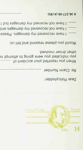 1649 ogc UY37a image#UY37a, 14c + 14c Wythe, paid reply postal card, printed on one card only, a scarce unused unfolded example, insurance claims questionnaire printed on one card, fresh and clean, extremely fine (USPCC #MR47a). (Image) USPCC 225.00