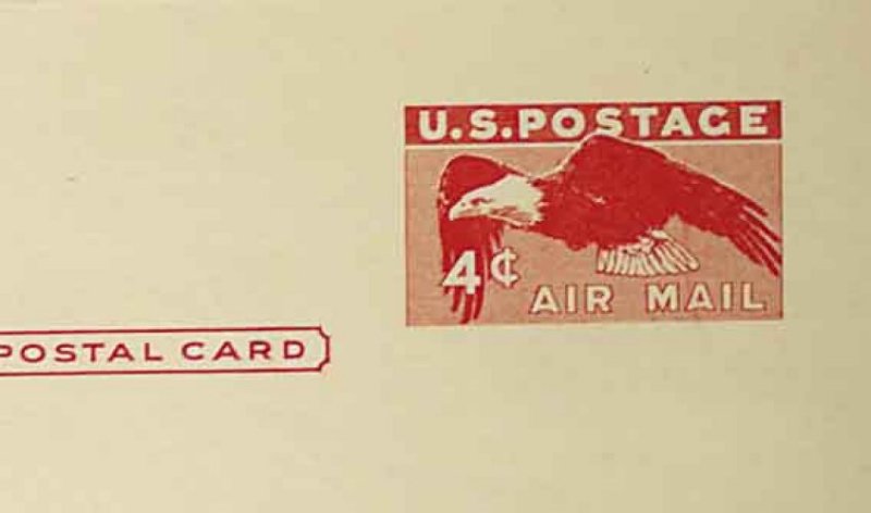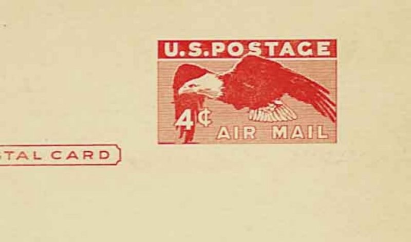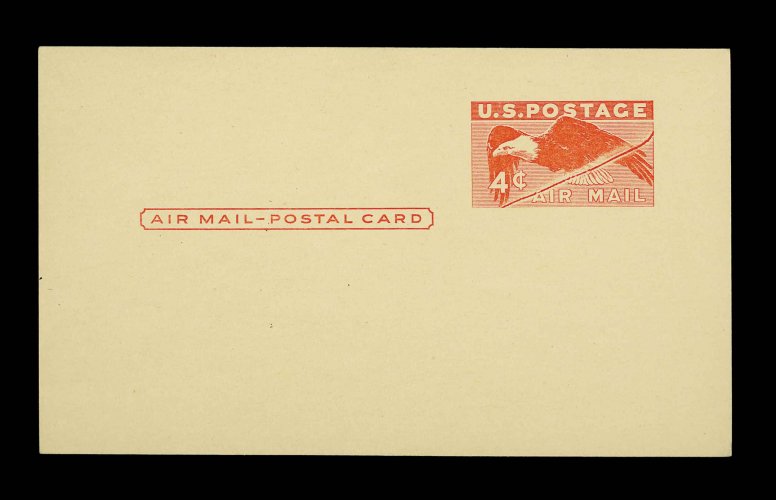 1655 ogc UXC1 var. image#UXC1 var., 4c Orange on buff, damaged plate variety, one of the most striking of all air post cards, mint, displaying the prominent and huge diagonal plate crack across the impression, bright and fresh, choice very fine and rare as only two mint examples are known to exist; ex-Beachboard (USPCC #SA1d). (Image) Est. 750-1,000