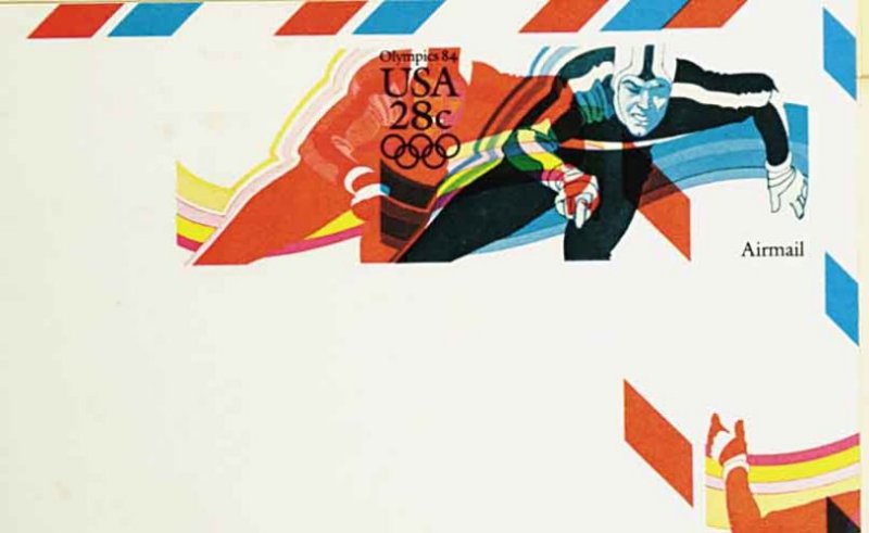 1661 ogc UXC21 var. image#UXC21 var., 28c Olympics, red and yellow color shift, striking mint card, displays dramatic 40mm red and yellow color shift to left, portion of adjoining card's shifted color shown at lower right, fresh and clean, an extremely fine and rare error as only one is known to exist (USPCC #SA20a-1). (Image) Est. 500-750