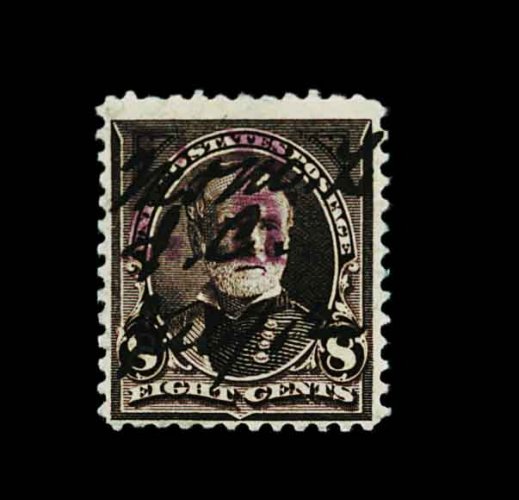 1787 O R156 image#R156, 8c Violet brown, magenta "I.R." provisional handstamped overprint, of the Michigan Mutual Life Insurance Co., with their July 12 (1898) ms. cancel, one of the few completely sound examples of this major rarity, with intensely rich color and impression, centered a bit to bottom but perforations are well clear of the design, fine; only 44 are reported to exist; 1992 PSE certificate; ex-Lyons. (Image) 4,000.00