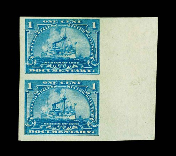 1791 og R163b image#R163b, 1c Pale blue, imperforate, choice right sheet-margin vertical pair, with large to huge margins on the other three sides, bright color, o.g., extremely fine and scarce; 1997 PF certificate; ex-Joyce. (Image) 350.00