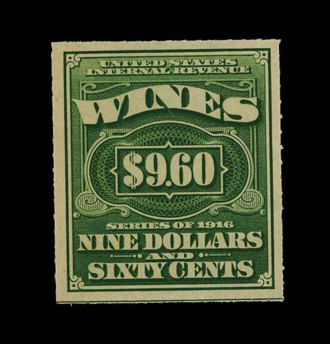 1900 O RE114 image#RE114, 3 1/2c Green and black, a magnificent quality used example of this highly important Wine stamp rarity, being completely free of any flaws and possessing exceptional physical characteristics, including outstanding centering within large margins, strong colors on bright fresh paper and its violet handstamp cancel is neatly and cleanly struck, extremely fine; quite likely to be the finest extant of the approximately five or six examples known; this exciting stamp, which only exists used, was last sold in our January 2000 sale of the marvelous collection formed by Larry Lyons, at that time it was acquired by Mr. Floyd for $16,500.00 when it cataloged $6,250.00; 1999 PSE certificate; ex-Cunliffe and Lyons. (Image) 12,500.00