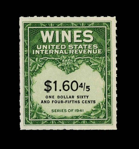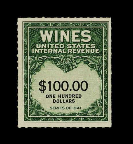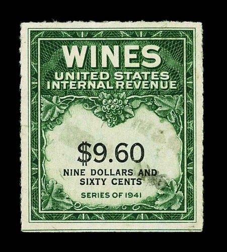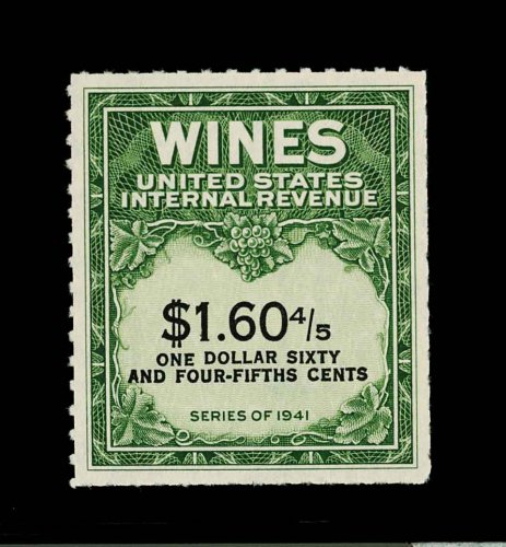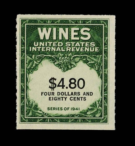1913 O RE204 image#RE204, $9.60 Yellow green and black, an extraordinary quality example of this major Wine stamp rarity of which less than twenty examples are known (all of which are used), completely free of the faults which affect virtually every existing example, featuring exceptional centering within large margins, rich luxuriant colors on bright paper, plus it has been very lightly and unobtrusively cancelled by a black handstamp, extremely fine; we believe this to be the finest quality example of #RE204 in existence; 1999 PSE certificate; ex-Lyons. (Image) 4,500.00