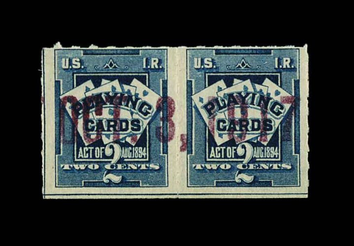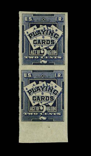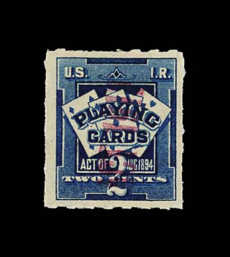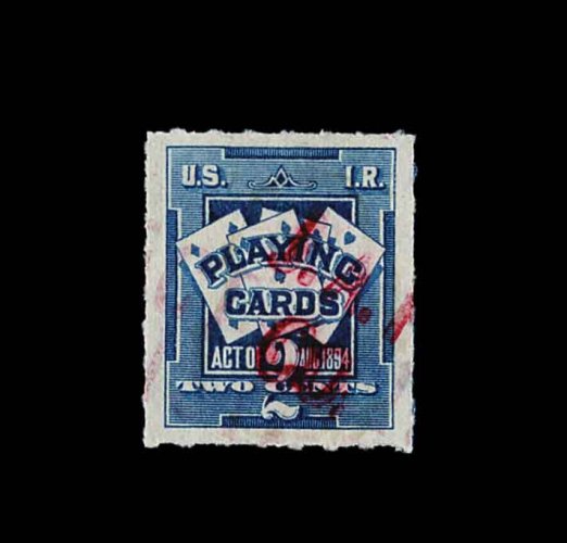 1915 nh RF5 image#RF5, 7c on 2c Ultramarine, handstamped surcharge "Act 1917" vertically in rose, an incredibly choice mint example of this key Playing Cards rarity, marvelously fresh and crisp, rich color, well centered, o.g., never hinged, extremely fine for this; one of the few certified mint examples of this we have seen; 1996 PF certificate; ex-Handy. (Image) for hinged 750.00