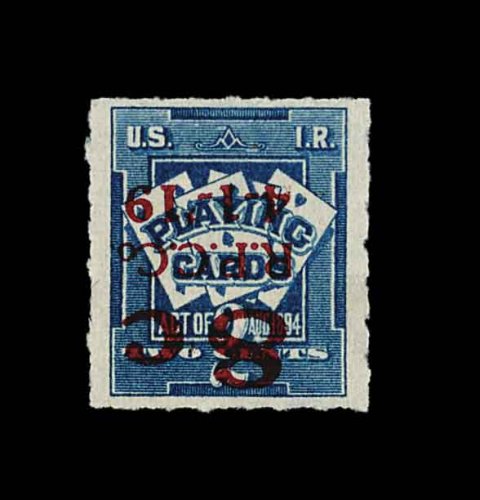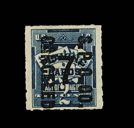 1922 O RF7a image#RF7a, 7c on 2c Blue, with inverted black surcharge, precancelled as always, quite fresh, well centered, still retaining its original gum, very fine; 1999 PSE certificate; ex-Lyons. (Image) 475.00