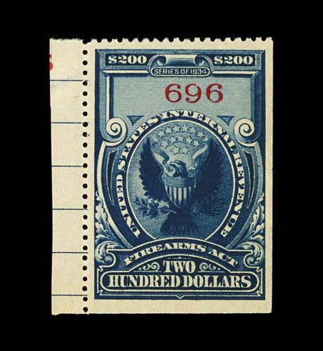 1958 og/nh RY1,3,5,6 image#RY1, 3, 5, 6, Firearms Transfer Tax group of four different issues, each well centered and particularly fresh, #RY1 and RY6 without gum as issued, #RY3 o.g., n.h., #RY5 o.g., l.h., very fine; ex-Handy. (Image) 685.00