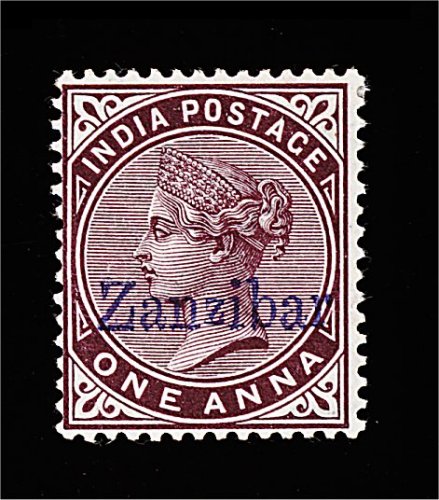 2013 og 2 var image# 2 var., 1895 1a Violet brown, with "Zanzibar" overprinted in blue, an incredibly fresh mint example of this rare stamp, which displays a small second "z" of "Zanzibar" variety which is not listed in Stanley Gibbons or Scott, gorgeous color on bright paper, o.g., l.h., couple of minor corner creases at bottom left, otherwise fine; an excellent item for the Zanzibar specialist; 1996 BPA certificate specifically describing the variety (S.G. #2 var.; £2,250+). (Image) 1,500.00+