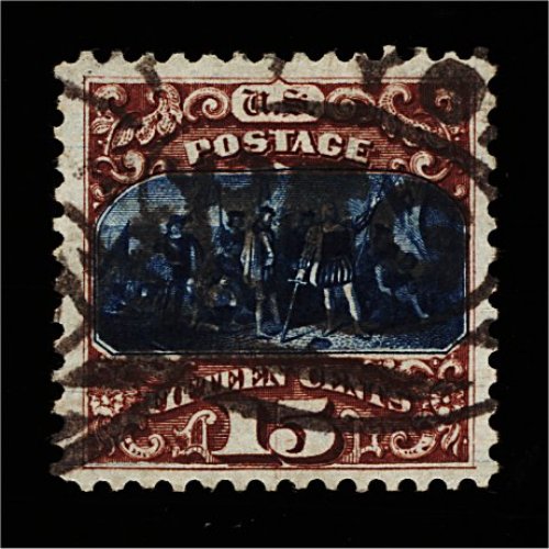 242 O 129 image#129, 15c Brown and blue re-issue, Ty. III, a gem used example of this very scarce re-issue, featuring outstanding centering within exceptionally large margins, strikingly intense colors and impressions on bright paper, bold neat strikes of New York registry oval postmarks confirming its contemporaneous usage, extremely fine and handsome; certainly among the finest of the few surviving used examples; 2000 PF certificate. (Image) 1,000.00