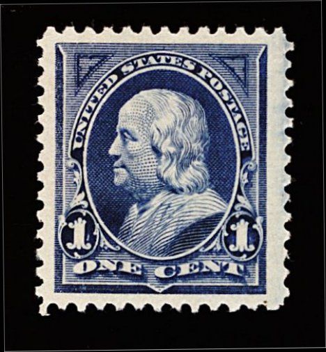 364 nh 247 image#247, 1c Blue, exceptionally well centered, with huge margins all around which are most uncharacteristic, deep luxuriant color, o.g., n.h., extremely fine; 1997 PSE certificate for a strip of three from which this stamp was taken. (Image) 125.00