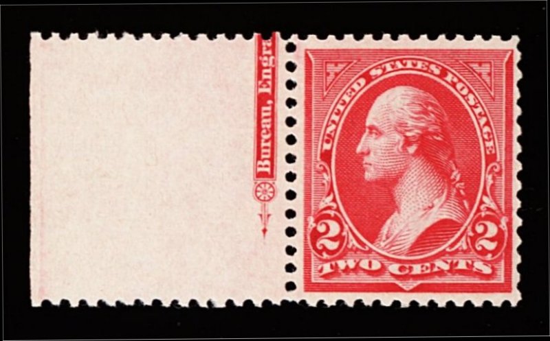 370 nh 252 image#252, 2c Carmine, Ty. III, pristine left sheet-margin partial imprint single, wonderfully fresh, radiant color, well centered, immaculate o.g., n.h., extremely fine; 2001 PF certificate. (Image) 220.00