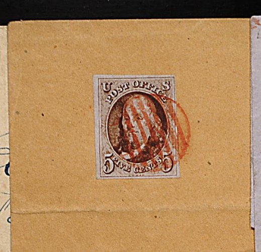 21 c 1 image#1, 5c Red brown, attractive example with four full to large margins, as well as strong fresh color, neatly tied to buff colored cover to Cooperstown, N.Y. by orange red grid cancel, matching "New-York/Feb 7" c.d.s. at far right, horizontal file fold to cover not affecting stamp or markings, very fine. (Image) 700.00