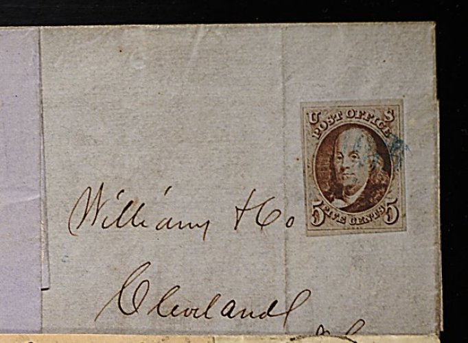 22 c 1 image#1, 5c Red brown, three large margins, close but easily clears at left, tied by light blue grid cancel with matching Warren, Ohio c.d.s. alongside on folded letter to Cleveland, cover a bit worn, stamp is very fine; clear 1981 PF certificate. (Image) 700.00