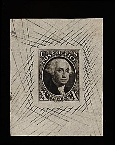 23 P 2P1a image#2P1a, 10c Black, large die proof on white bond paper, with margins measuring a lavish 41x52mm, allowing complete crosshatching to show, wonderfully fresh, extremely fine; an especially rare and desirable large die proof showing the complete crosshatching and not cut down as is so often the case; 1980 PF certificate. (Image) 800.00