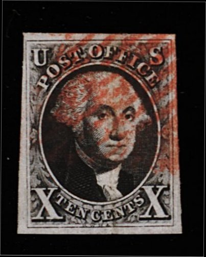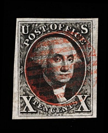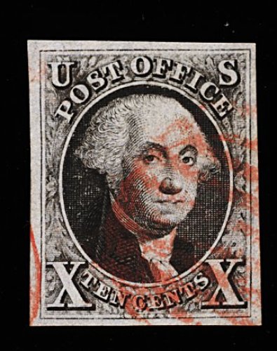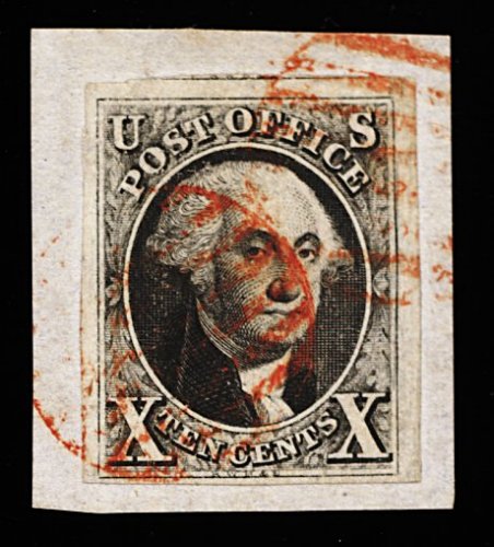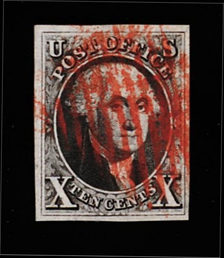 26 O 2 image#2, 10c Black, an extraordinarily choice used example, featuring not only four large and even margins, but its impression is incredibly detailed, with the presence of many fine lines of engraving detail not often found, rich color as well on bright paper, all marvelously contrasted by a light strike of a vivid red cancel, extremely fine; a stamp with great eye appeal; 2000 PF certificate. (Image) 1,400.00