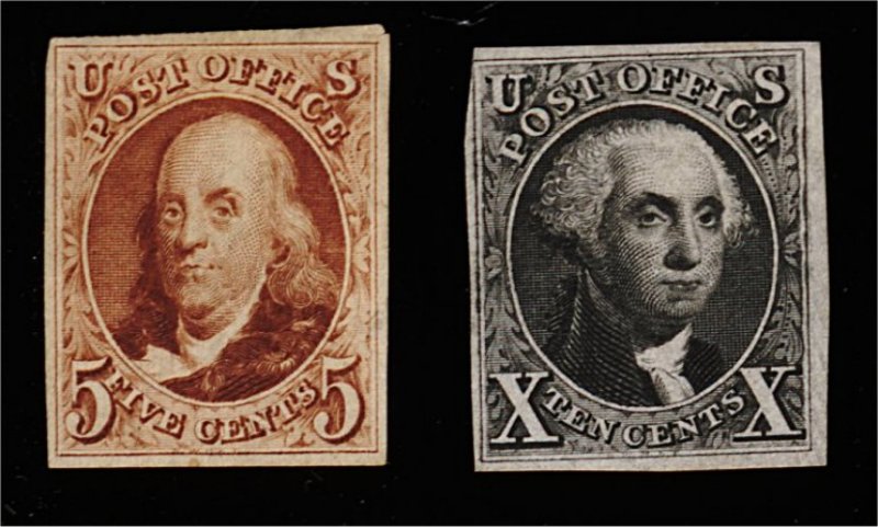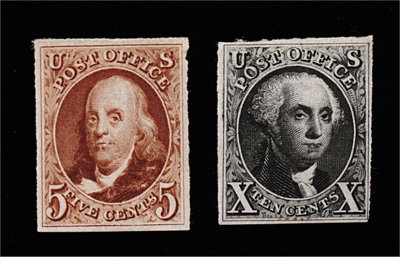 34 og 3-4 image#3-4, 5c and 10c Reproductions, without gum as issued, each with four slightly irregular margins (10c close but clear at bottom right), strong colors and impressions, 10c with small corner thin spot, otherwise fine-very fine. (Image) 1,800.00