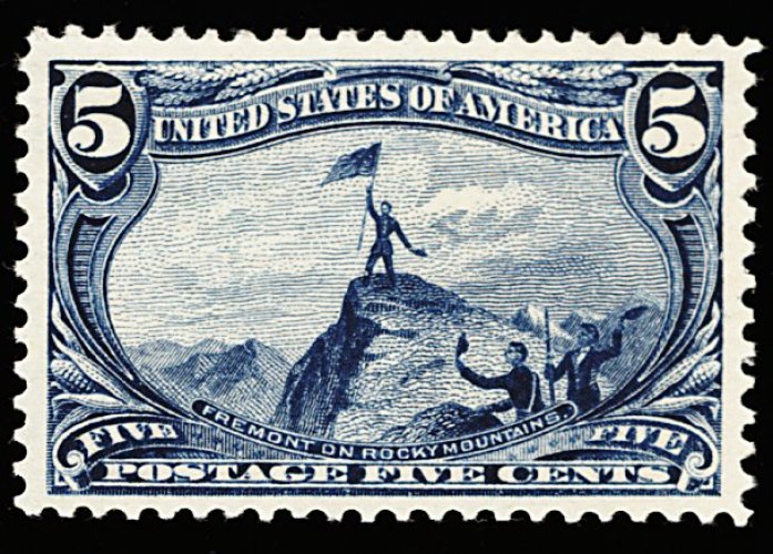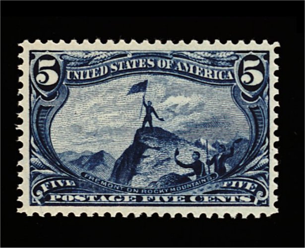 406 nh 288 image#288, 5c Trans-Mississippi, pristine mint single, quite well centered within large margins, sumptuously rich color and a deeply etched impression, o.g., n.h., very fine and choice; 2001 PF certificate for a vertical pair, this being the top stamp. (Image) 260.00