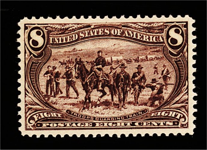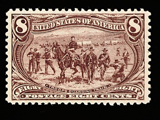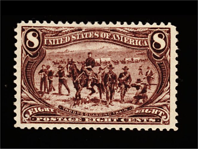 408 nh 289 image#289, 8c Trans-Mississippi, an eye-arresting mint example which possesses exceptional overall physical qualities seldom associated with this value, including being incredibly well centered amid extravagantly large margins that are most uncharateristic, warm rich color and prooflike impression on bright paper, immaculate o.g., never hinged, extremely fine; a pristine gem; 2000 PF certificate. (Image) 340.00