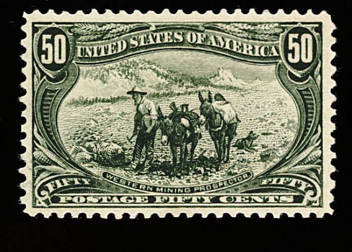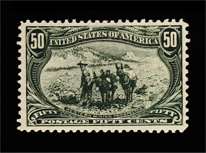 417 og 291 image#291, 50c Trans-Mississippi, remarkably well centered amid margins which are considerably larger than normally encountered, luxuriously rich color and a razor-sharp impression on bright paper, o.g., lightly hinged, extremely fine; an especially handsome stamp; 2001 PF certificate. (Image) 650.00