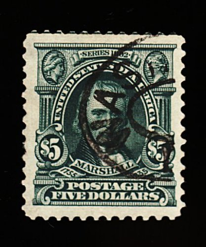 461 O 313 image#313, $5.00 Dark green, a striking jumbo used single, possessing margins of gigantic size and being exceedingly well centered within these incredible borders, rich color, oval cancel, extremely fine; one of the largest margined examples of this high value we have ever encountered; 1994 PF certificate. (Image) 750.00