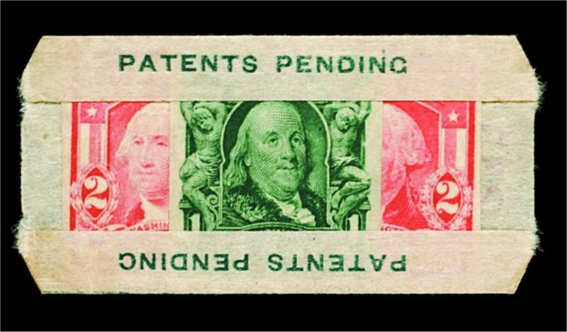466 nh 314, 320b var. image#314, 320b vars., 1c Blue green and 2c Scarlet imperforates, a single of the former and a pair of the latter, enclosed within U.S. Automatic Vending Co. pocket Ty. I-2, the very rare first type with green "patents pending" printed on top and bottom flaps, as well as green printed advertising on reverse, numbered 239 on reverse, o.g., n.h., very fine; certainly the rarest of all the fascinating stamp "pockets"; 2000 PSE certificate; ex-Manthey. (Image) 2,500.00