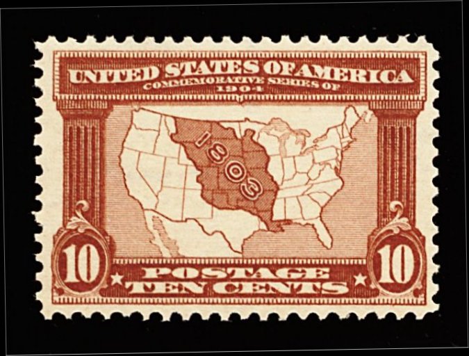 479 nh 327 image#327, 10c Louisiana Purchase, unusually well centered within large margins for the issue, brilliantly fresh, o.g., n.h., extremely fine; photocopy of a 2000 PF certificate for a block of four, this being the bottom right stamp. (Image) 325.00