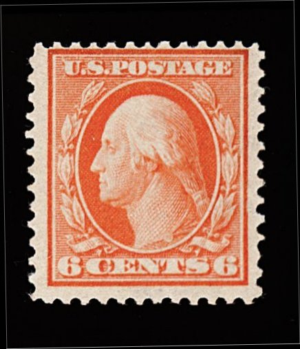 528 og 362 image#362, 6c Red orange on bluish paper, especially wide margins on three sides, vibrant color, o.g., lightly hinged, fine; 2000 PSE certificate. (Image) 1,500.00