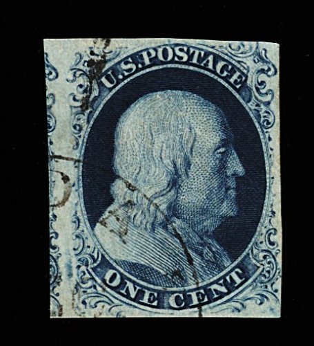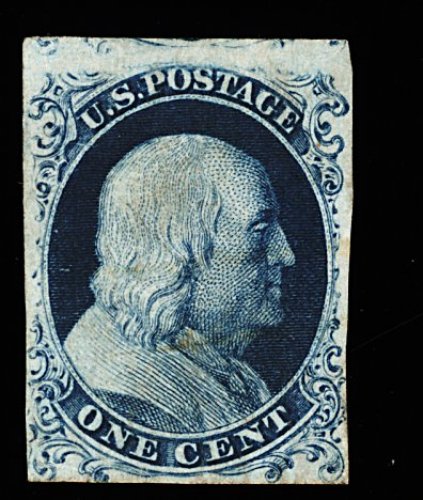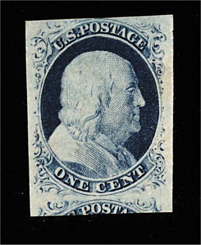 50 og 9 image#9, 1c Blue, Ty. IV, very fresh mint example, ample margin at top, other margins extravagantly large, showing a portion of the adjoining stamp at bottom, deep rich color and a well defined impression, full clean o.g., small minor h.r., very fine and choice. (Image) 750.00