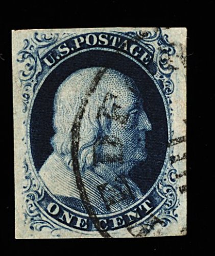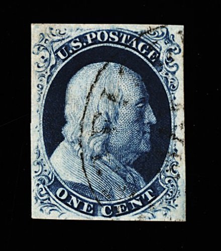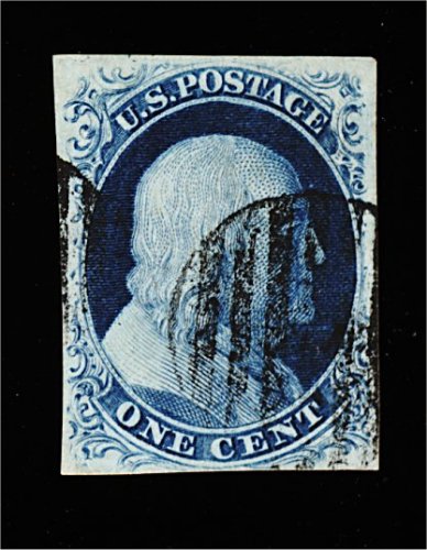 48 O 8A image#8A, 1c Blue, Ty. IIIa, position 14R1E, attractive used example, with four full and even margins, exceptionally rich color and a deeply etched impression on bright fresh paper, grid pmk., choice very fine; 1998 APS certificate. (Image) 975.00